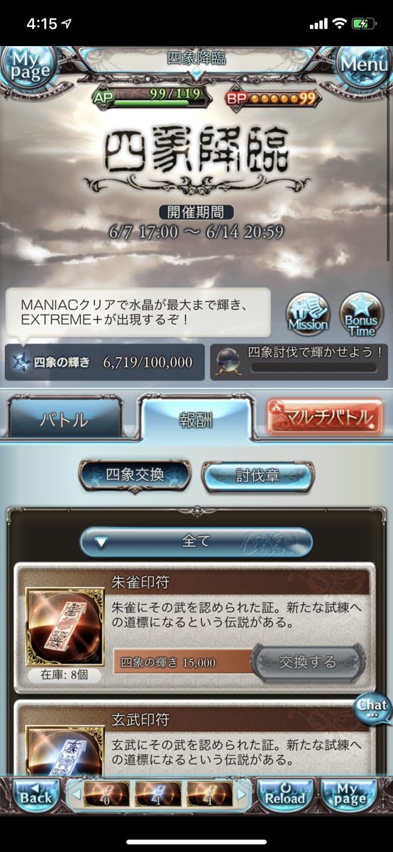 グラブル デイリーミッションで最大 四象の輝き と クロム鋼 8個 四象降臨 くまのゲームblog グラブル奮闘中