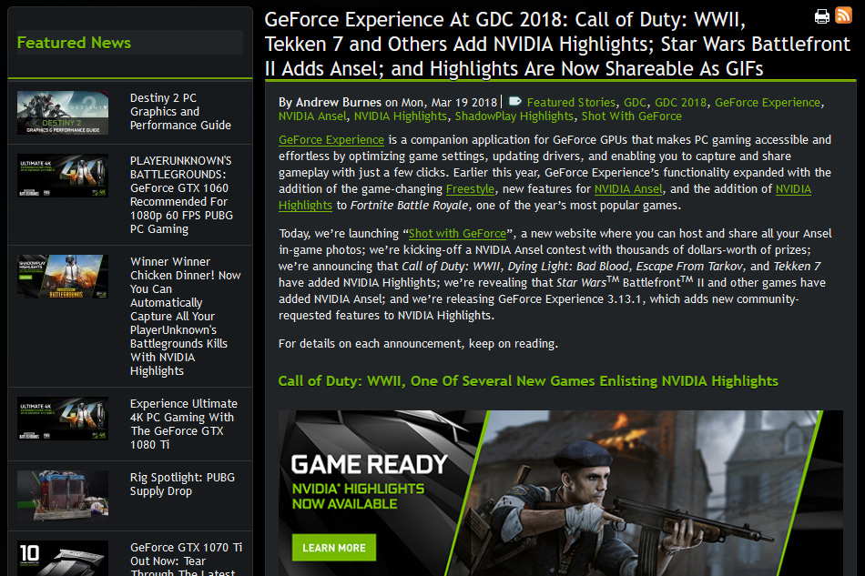Nvidia ハイライト 音が入らない-NVIDIA Highlights は、GeForce Experience を使用することで他の多数のゲームでも利用可能です。 対応ゲームは こちらの一覧 でご確認いただけます。 さらに、『Battlefield V』のシングルプレイヤー キャンペーンでは、 NVIDIA Ansel を利用してお気に入りのシーンを記録NVIDIA Highlights enables automatic video capture of key moments, clutch kills, and matchwinning plays, ensuring gamers' best gaming moments are always saved Once a Highlight is captured, gamers can simply share it directly to Facebook, , or Weibo right from GeForce Experience's ingame overlay Additionally, they can also clip their favorite 15 seconds and share as